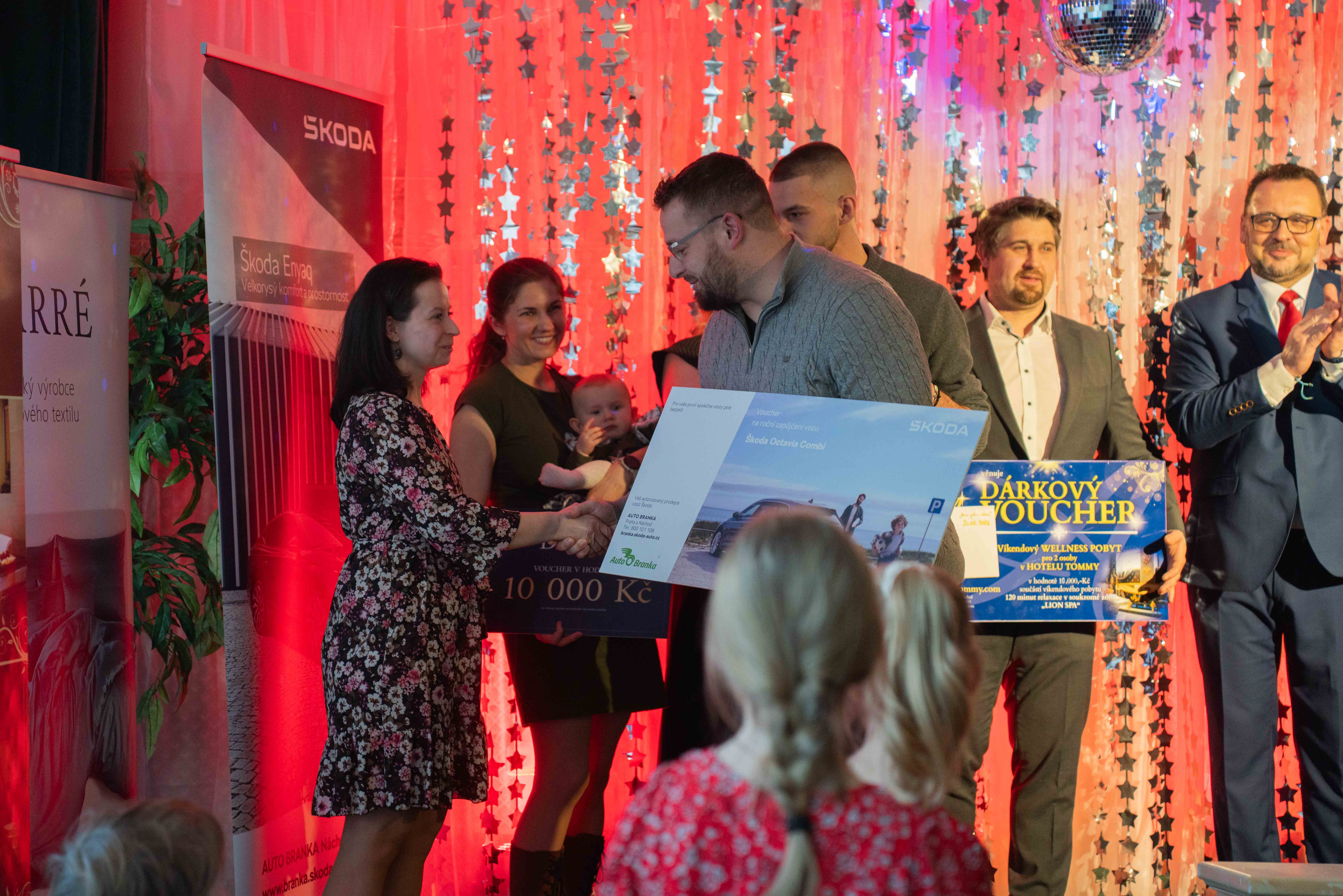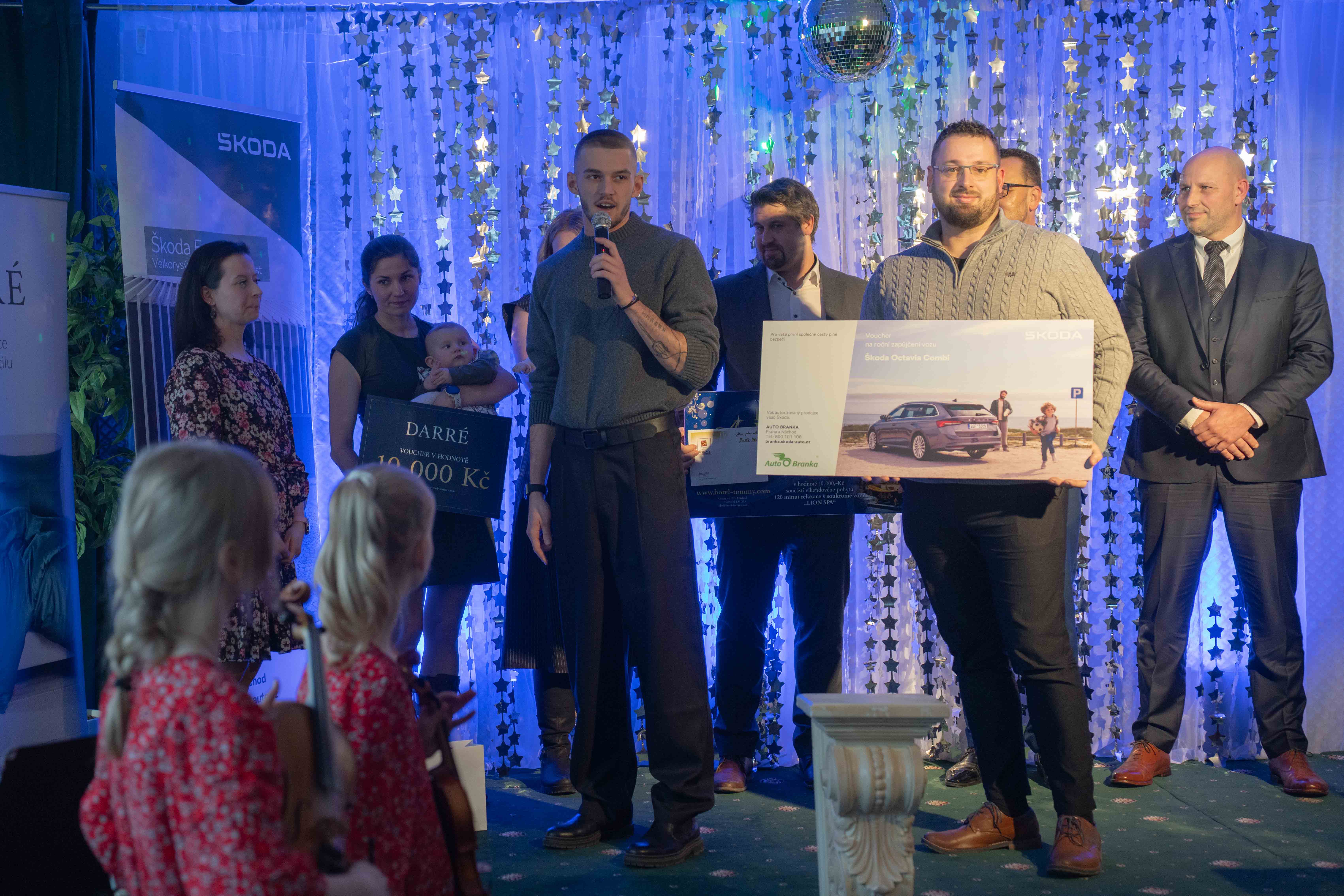 - Škoda AUTO BRANKA věnovala balíček obsahující dřevěné odrážedlo a další dárky pro rodiny s dětmi a jako hlavní dar roční zapůjčení rodinného vozu Škody Octavia.