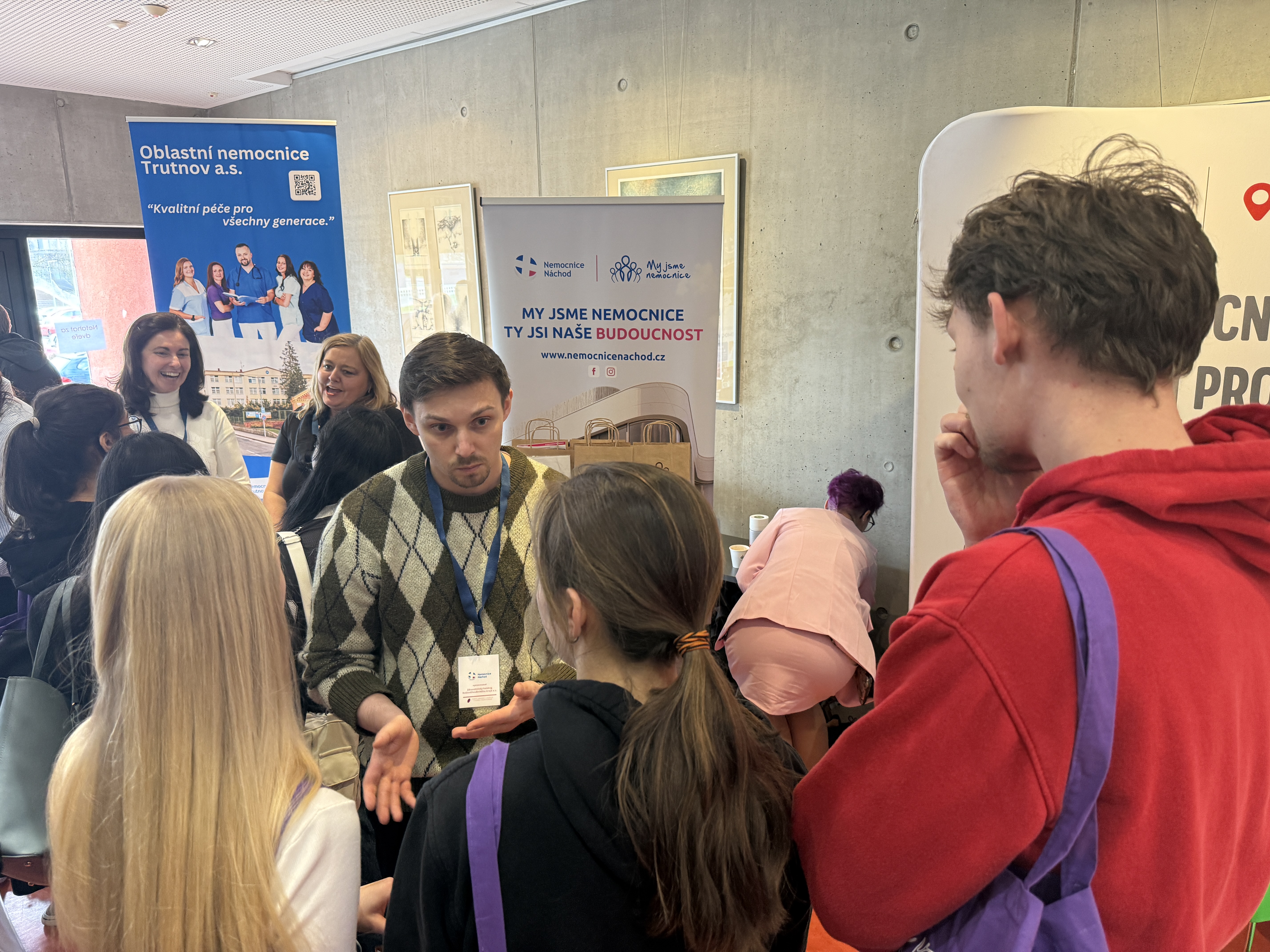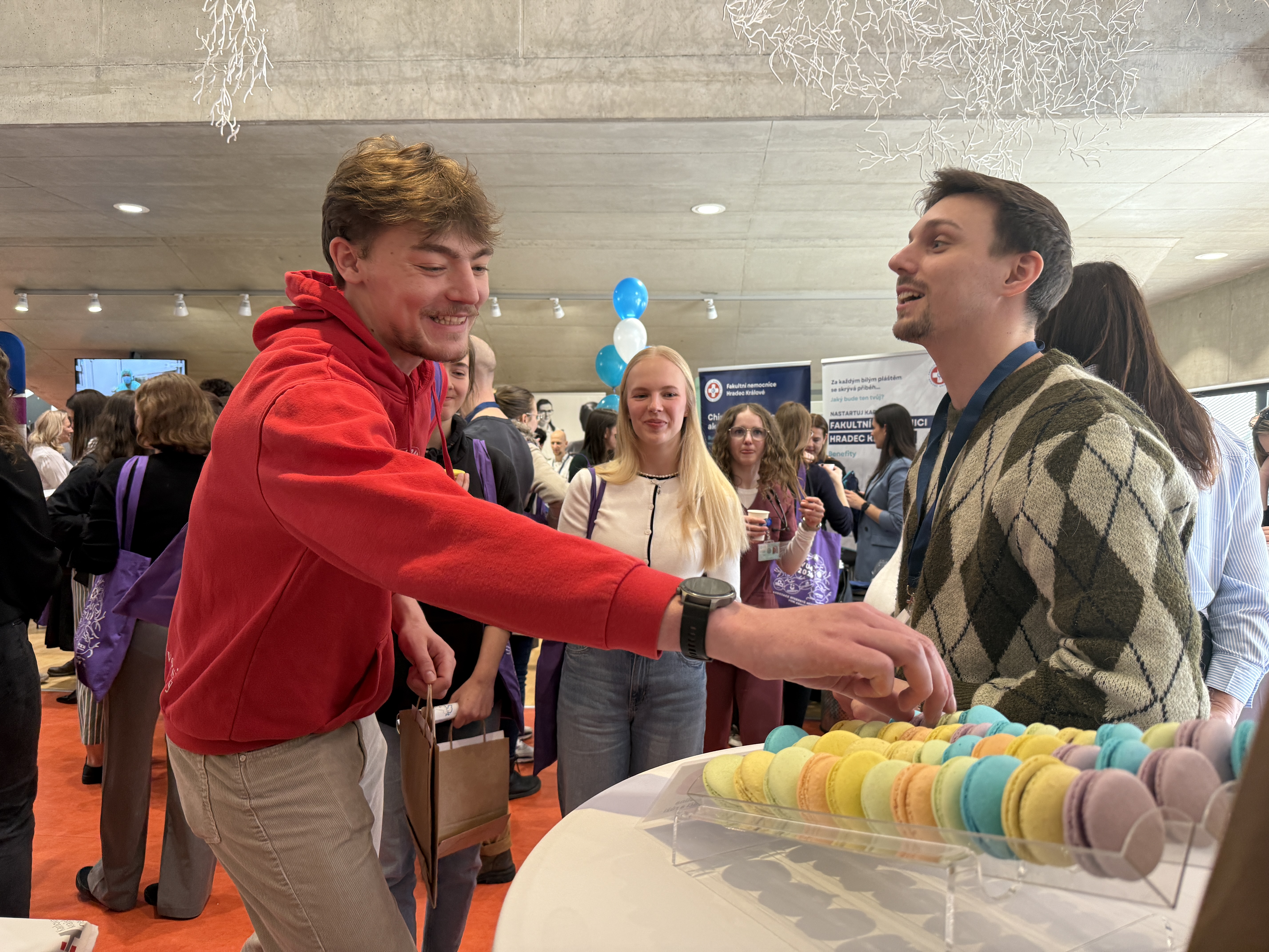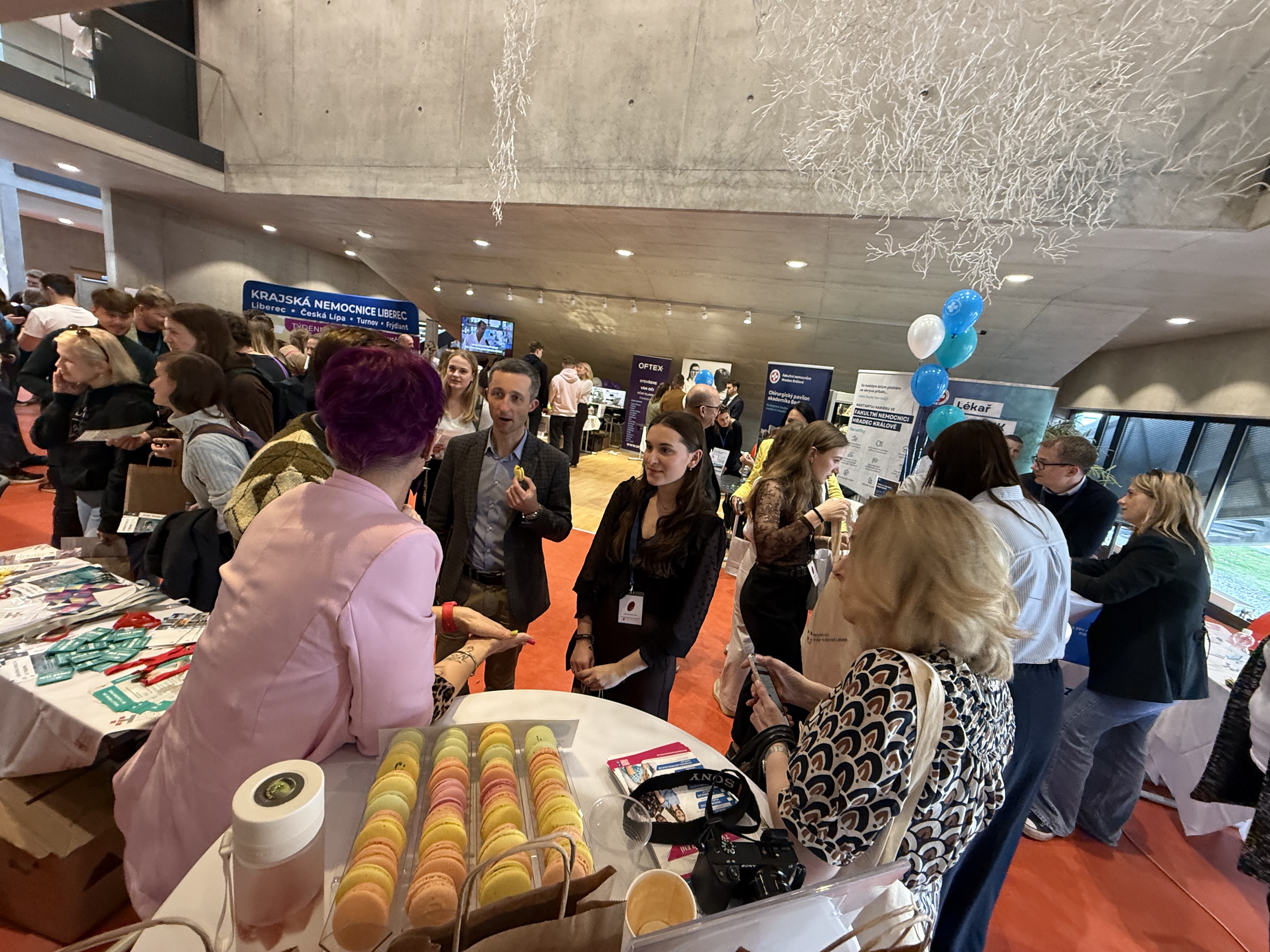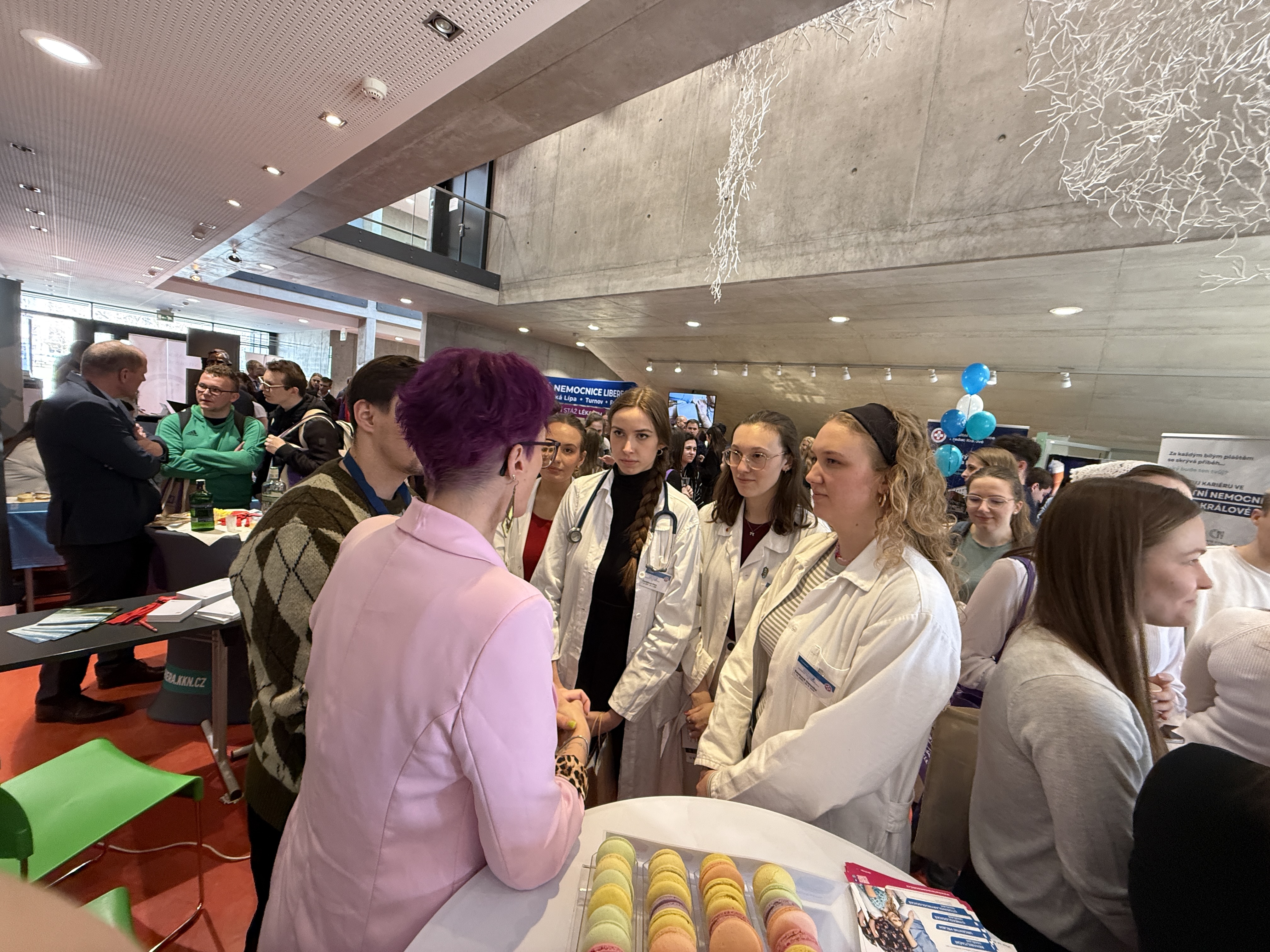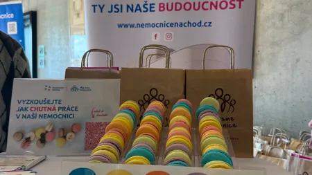 Na našem stánku si studenti mohli pochutnat na vynikajících makronkách a zároveň se dozvědět více o možnostech uplatnění v naší nemocnici.