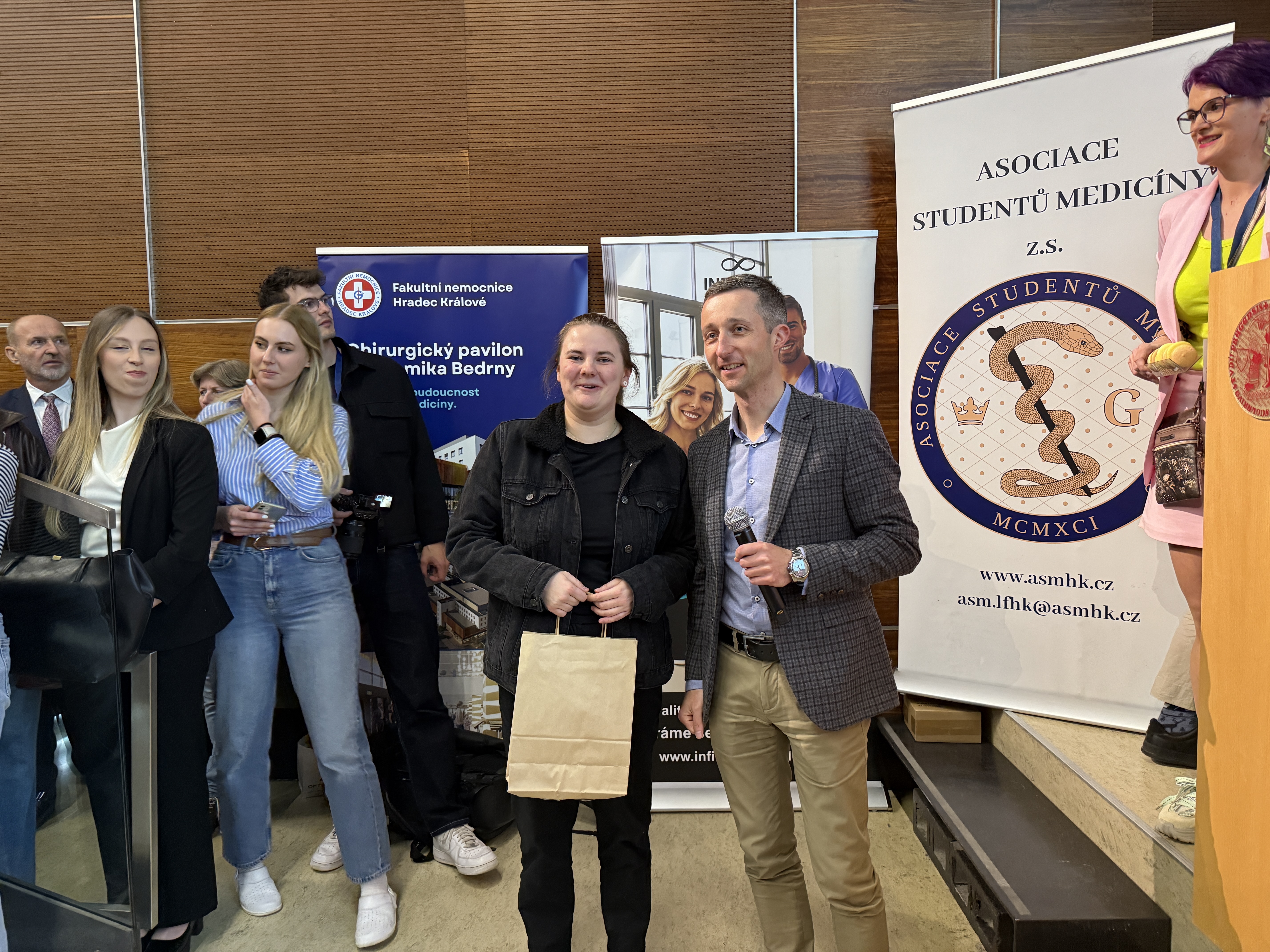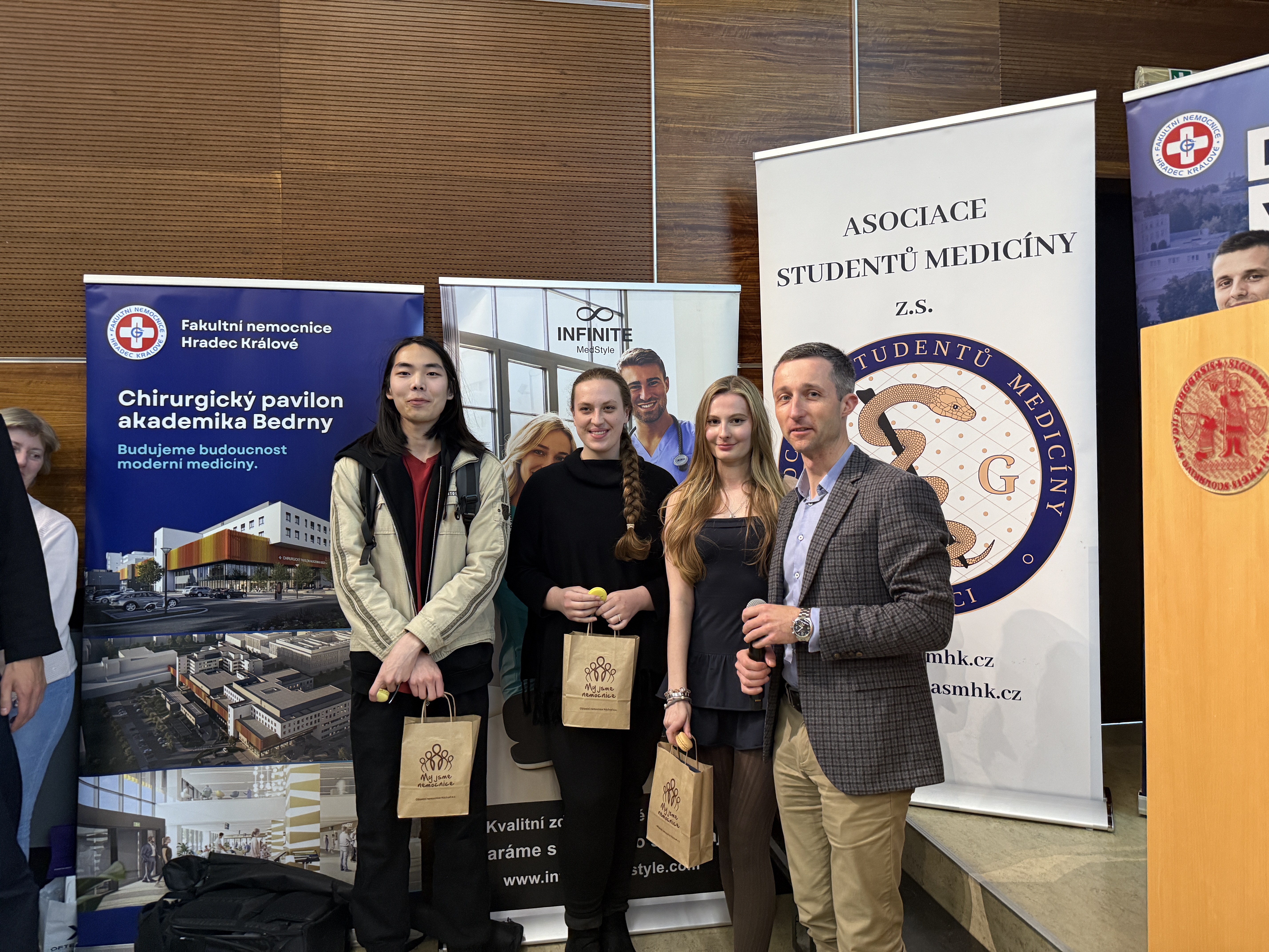 Letošní přednášky měly netradiční formu – ujali se jich naši lékaři, dvojčata Jakub a Matěj, kteří studentům představili svůj pracovní den prostřednictvím vlogu. Přiblížili tak realitu práce na chirurgii i na oddělení ARIM.