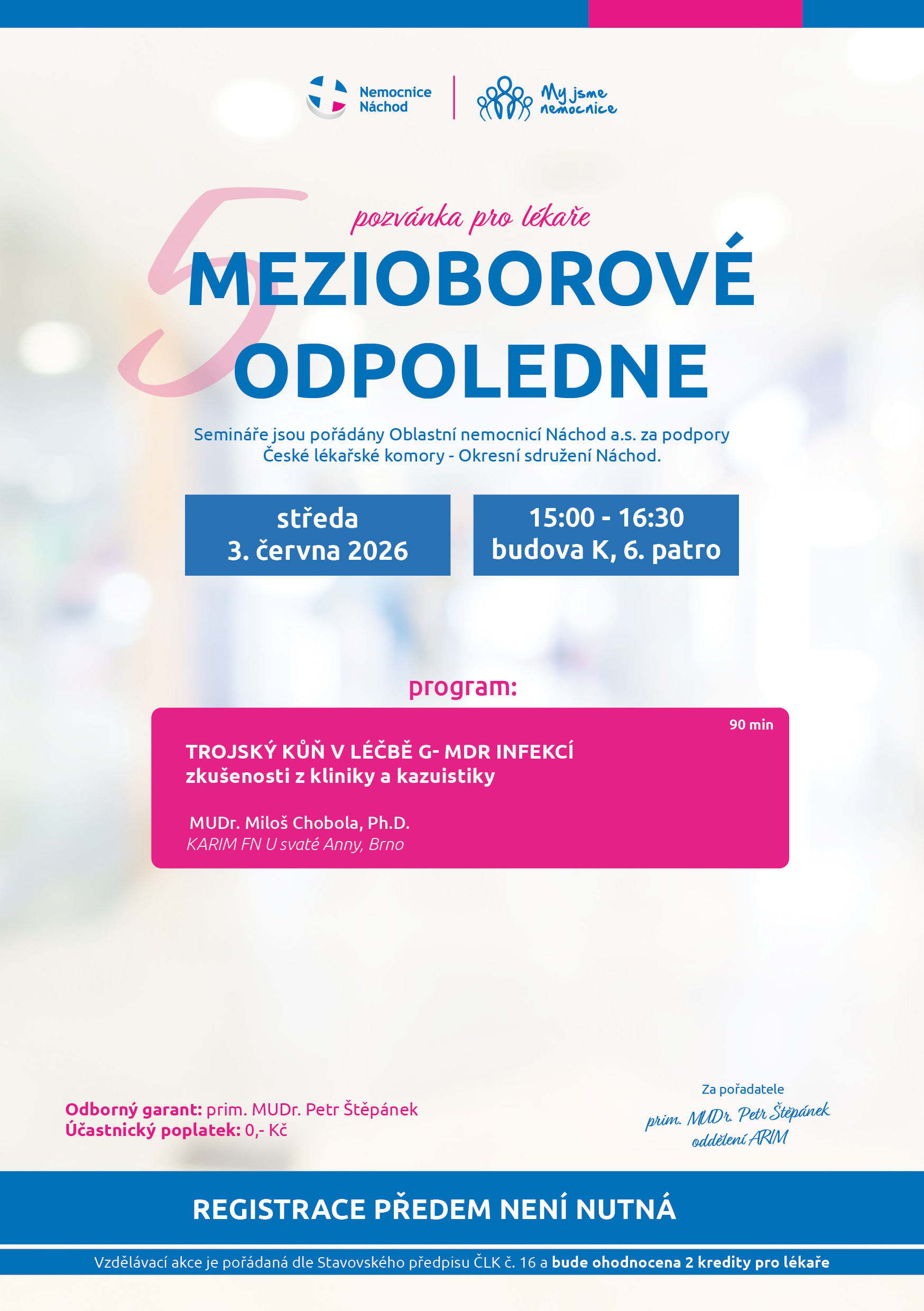 Vzdělávací akce je pořádaná dle Stavovského předpisu ČLK č. 16 a bude ohodnocena 2 kredity pro lékaře.